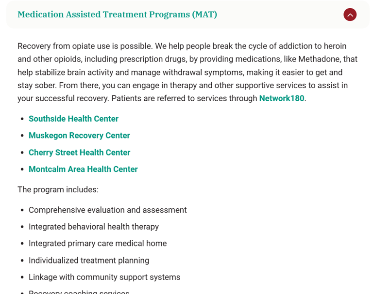 Medication-Assisted Treatment (MAT): Cherry Health provides MAT for opioid use disorder, offering medications like Suboxone, along with therapy and support to help individuals overcome addiction and maintain long-term recovery.