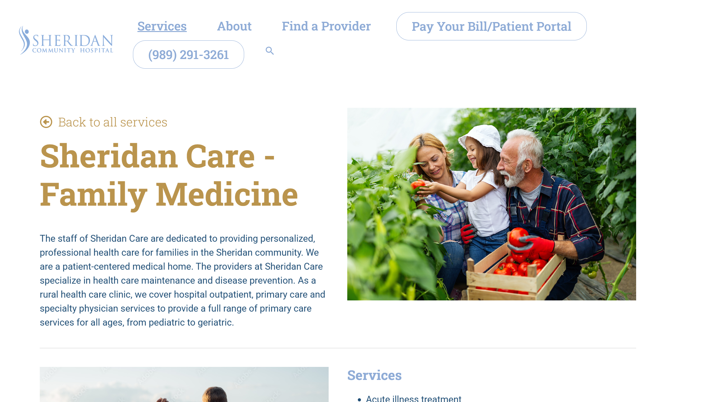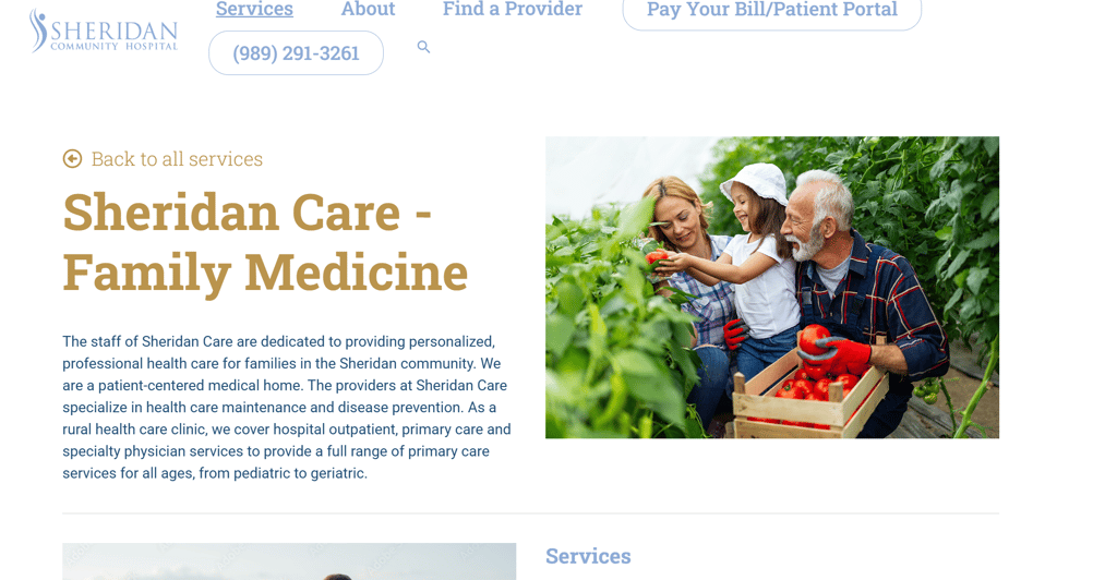 Comprehensive Family Medicine: Sheridan provides medical care for all ages, including routine physicals, vaccinations, gynecological exams, and sports and school physicals, with a focus on health maintenance and disease prevention.